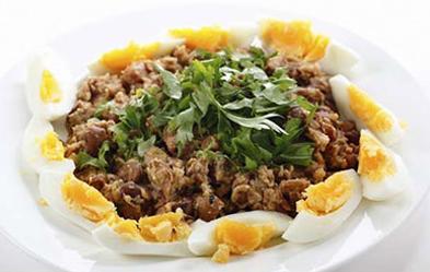 El guiso egipcio (a base de carne vacuna en trozos y acompañado con verduras).