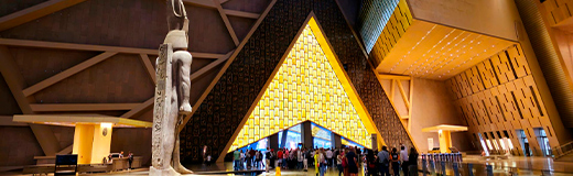 Desayuno. A la hora indicada, salida hacia Guiza para descubrir uno de los conjuntos arqueológicos más impresionantes del mundo: la Gran Esfinge y las emblemáticas pirámides de Keops, Kefrén y Micerinos. De manera OPCIONAL, posibilidad de visitar el nuevo Gran Museo Egipcio, el mayor museo arqueológico del mundo, con almuerzo incluido en restaurante local. Regreso al hotel y alojamiento. En la noche y de manera OPCIONAL, posibilidad de realizar un paseo nocturno al centro histórico de El Cairo para disfrutar de la Noche Cairota, comenzaremos recorriendo la calle Al-Muizz, uno de los grandes ejes del Cairo medieval y el bazar de Khan el Khalili. Parada en el tradicional Café El Fishawi para tomar un té o café y cena en restaurante tradicional para degustar la gastronomía egipcia (bebidas no incluidas) al finalizar regreso al hotel.